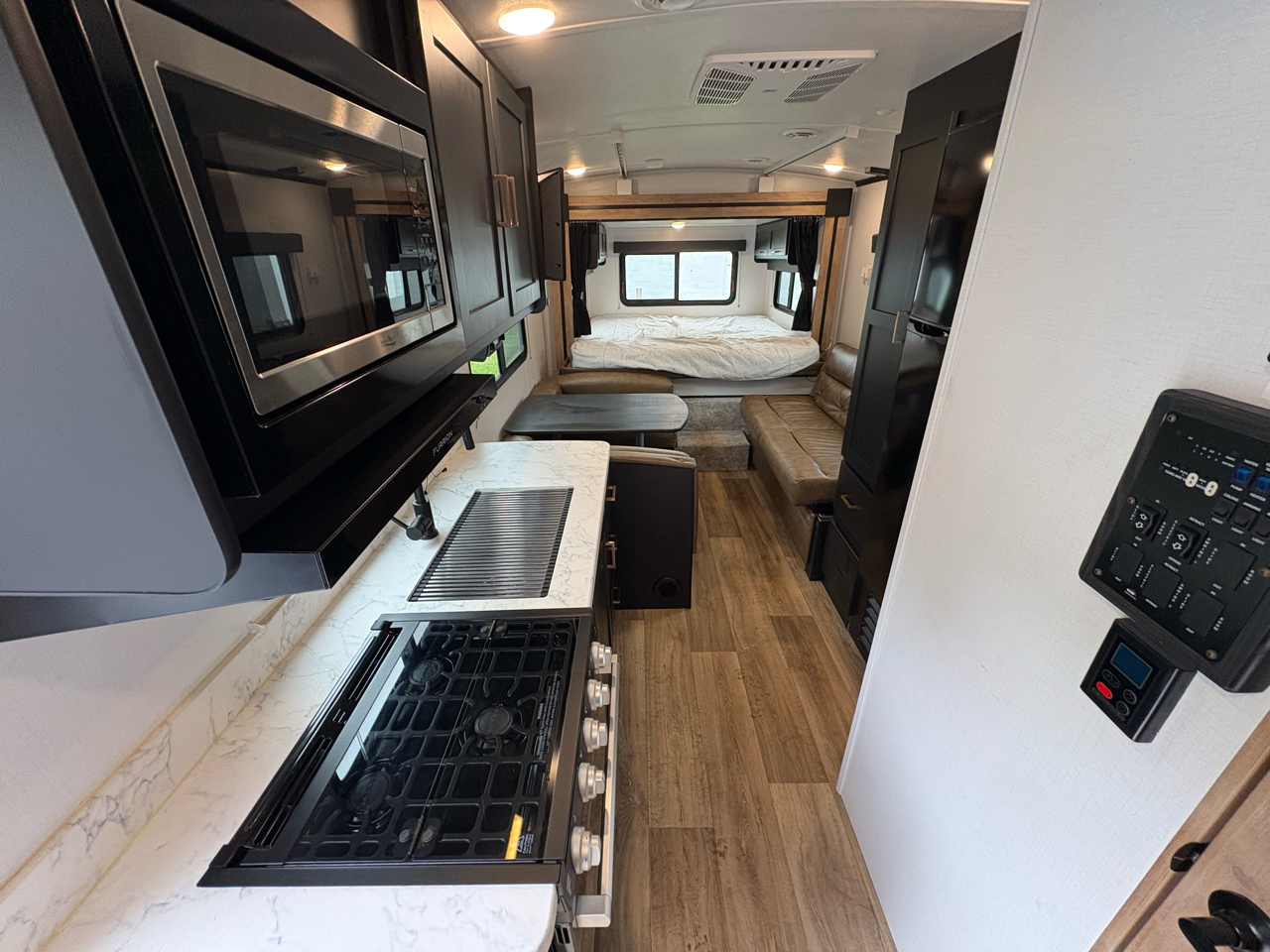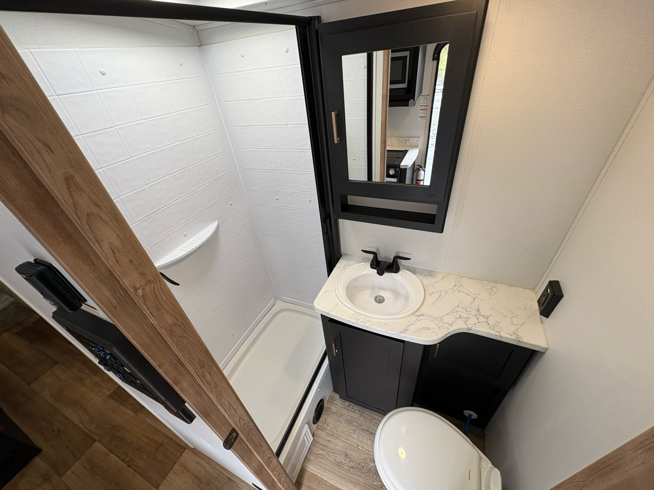 • Bathroom: Full bath with shower, sink, and toilet for convenience on the road